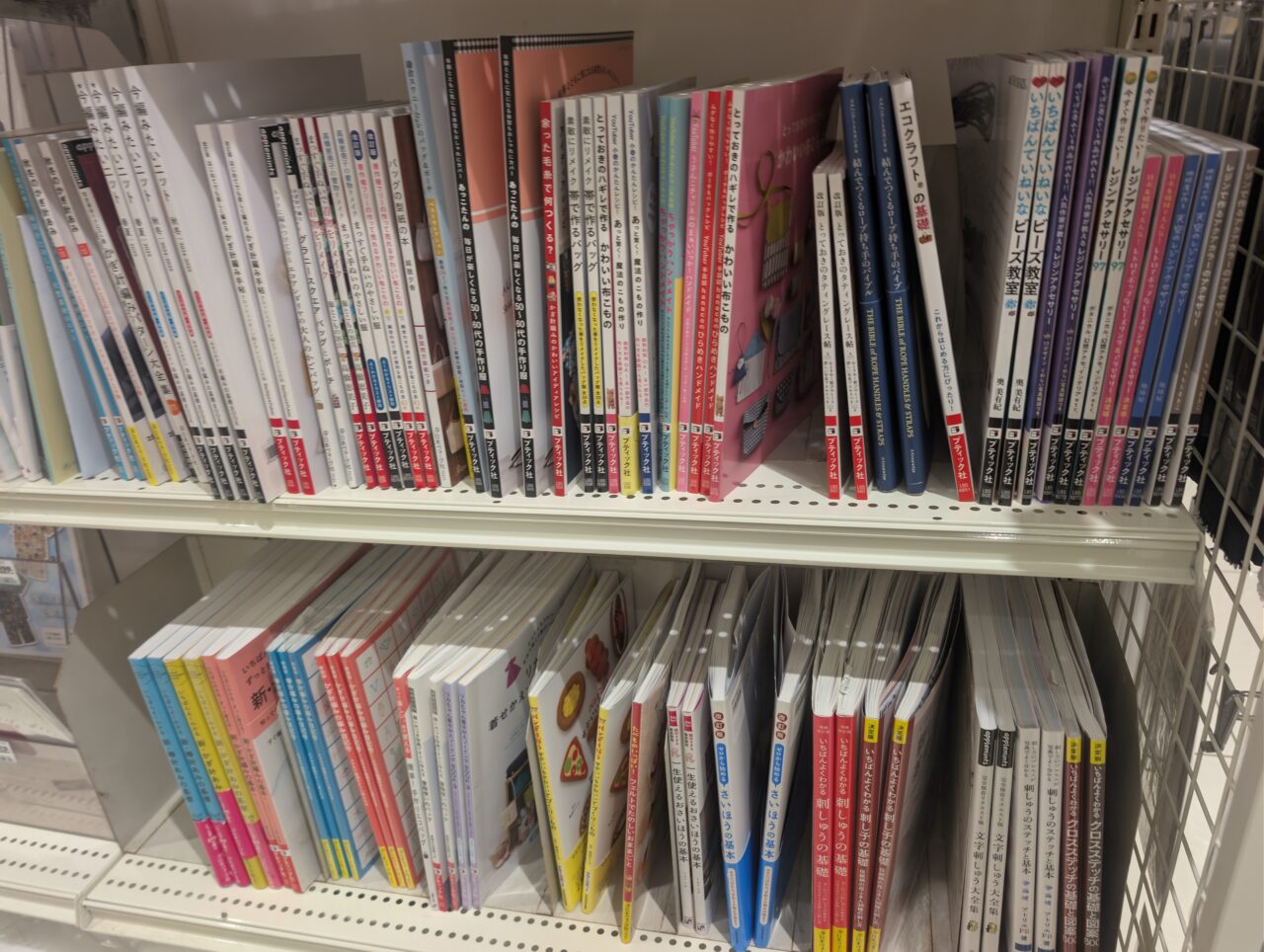 一角にはハンドメイドに関わる書籍も販売されていて、編み物やビーズ、レジンアクセサリーなど幅広いジャンルが揃っています。
