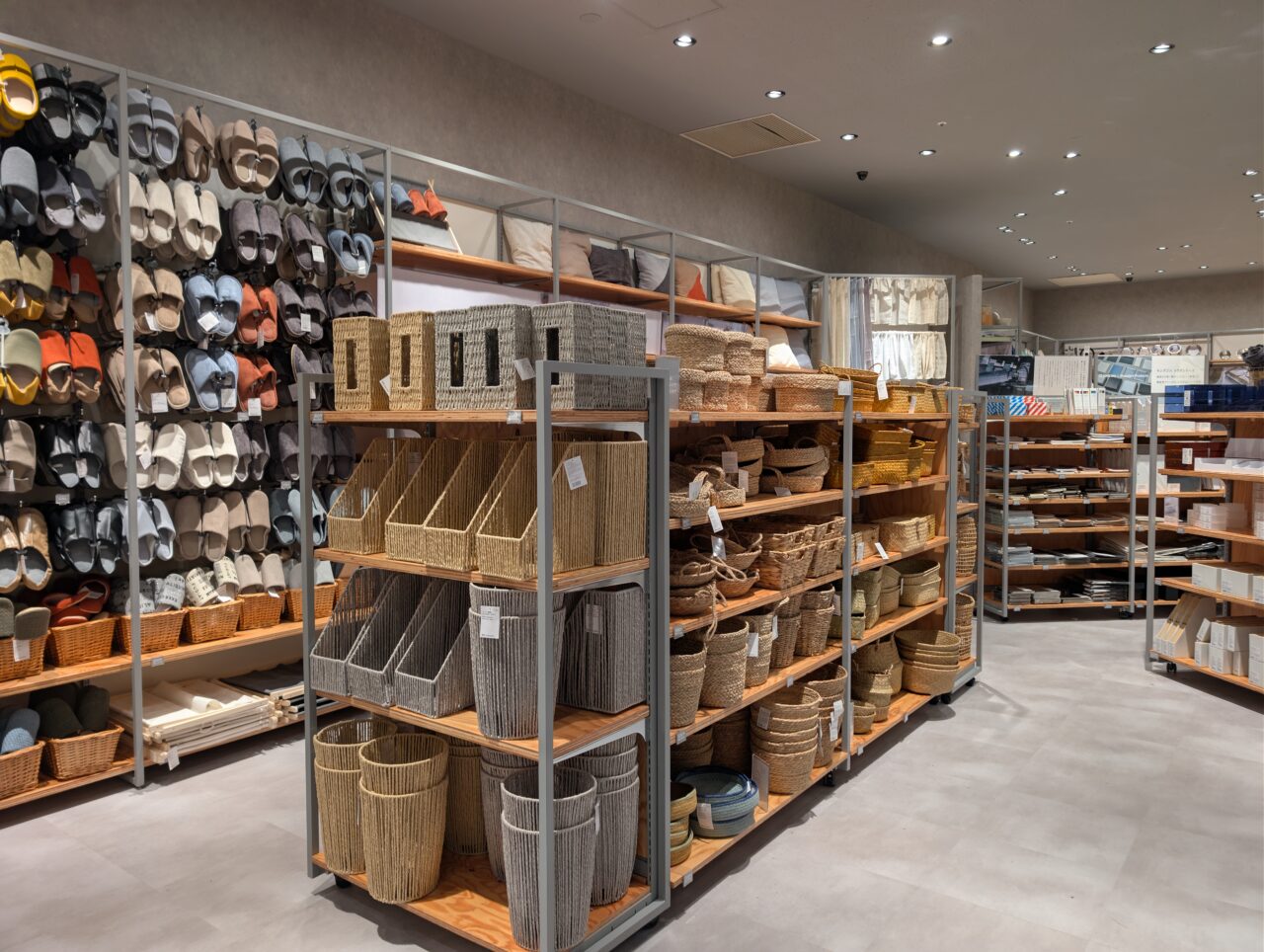 広々とした店内は、横一列にずらっと棚が並び、商品も豊富に見やすく陳列されていました。通路がまっすぐなので、店内のPOPが目立ち、買い物しやすいレイアウトとなっています。